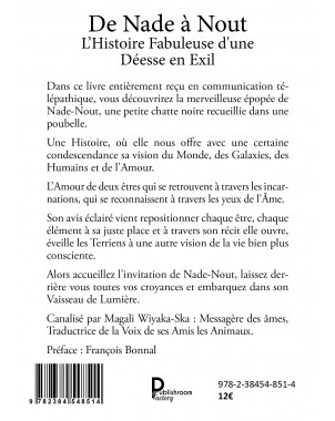 Dans ce livre entièrement reçu en communication télépathique, vous découvrirez la merveilleuse épopée de Nade-Nout, une petite chatte noire recueillie dans une poubelle.