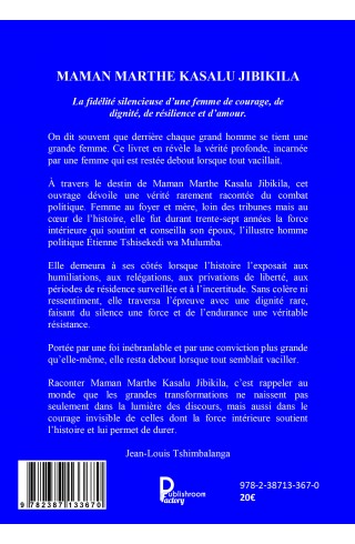 À travers le destin de Maman Marthe Kasalu Jibikila, cet ouvrage dévoile une vérité rarement  racontée du combat politique. Femme au foyer et mère, loin des tribunes mais au cœur de l'histoire, elle fut durant trente-sept années la force intérieure qui soutint et conseilla son époux, l'illustre homme politique Etienne Tshisekedi wa Mulumba.