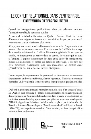 D’abord inspecteur du travail, Michel Perron, à la suite d’un voyage d’étude au Québec, s’est consacré à l’amélioration des relations collectives au sein des organisations. Son travail de recherche dans le cadre d’un doctorat, de capitalisation méthodologique en tant que pilote et formateur du dispositif ARESO (Appui aux Relations Sociales) mis en place par le Ministère du Travail et l’Agence Nationale pour l’Amélioration des Conditions de Travail (ANACT), son expérience étendue d’intervention, en font un spécialiste reconnu dans ce domaine.