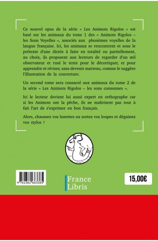 Ce nouvel opus de la série « Les Animots Rigolos » est basé sur les animaux du tome 1 des « Animots Rigolos - les Sons Voyelles », associés aux phonèmes voyelles de la langue française. Ici, les animaux se rencontrent et sous le prétexte d’une dictée à faire en totalité ou partiellement, au choix, ils proposent aux lecteurs de regarder d’un œil observateur et rusé le texte pour le décortiquer, et pour apprendre et réviser, sans devenir marteau, comme le suggère l’illustration de la couverture.