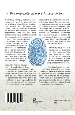 Les problèmes liés à la gestion et la raréfaction de l’eau dans le monde, à son partage et aux conséquences géopolitiques sont ici traités sous un prisme de lecture pratique et sans détours, afin d’éveiller les consciences, d’ouvrir les portes de la réflexion et des responsabilités de chacun : du capitaine d’industrie au politique, en passant par le particulier.