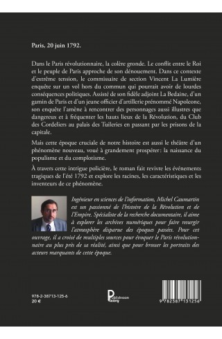 Dans le Paris révolutionnaire, la colère gronde. Le conflit entre le Roi et le peuple de Paris approche de son dénouement. Dans ce contexte d’extrême tension, le commissaire de section Vincent La Lumière enquête sur un vol hors du commun qui pourrait avoir de lourdes conséquences politiques. Assisté de son fidèle adjoint La Bedaine, d’un gamin de Paris et d’un jeune officier d’artillerie prénommé Napoleone, son enquête l’amène à rencontrer des personnages aussi illustres que dangereux et à fréquenter les hauts lieux de la Révolution, du Club des Cordeliers au palais des Tuileries en passant par les prisons de la capitale.