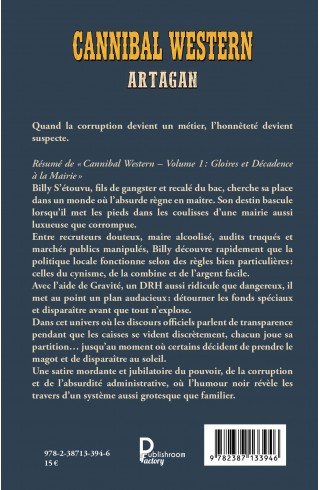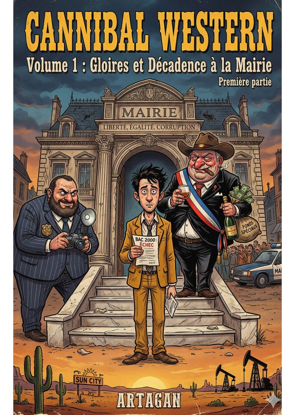 Quand la corruption devient un métier, l’honnêteté devient suspecte. Résumé de « Cannibal Western – Volume 1 : Gloires et Décadence à la Mairie » Billy S’étouvu, fils de gangster et recalé du bac, cherche sa place dans un monde où l’absurde règne en maître. Son destin bascule lorsqu’il met les pieds dans les coulisses d’une mairie aussi luxueuse que corrompue.