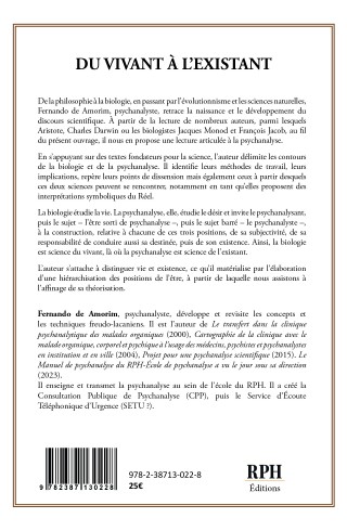 Fernando de Amorim, psychanalyste, développe et revisite les concepts et les techniques freudo-lacaniens. Il est l’auteur de Le transfert dans la clinique psychanalytique des malades organiques (2000), Cartographie de la clinique avec le malade organique, corporel et psychique à l’usage des médecins, psychistes et psychanalystes en institution et en ville (2004), Projet pour une psychanalyse scientifique (2015). Le Manuel de psychanalyse du RPH-École de psychanalyse a vu le jour sous sa direction (2023).